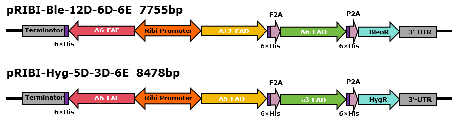 图3 顺利获得双向启动子Ribi和2A肽构建的潜在可促进微拟球藻EPA合成的表达模块